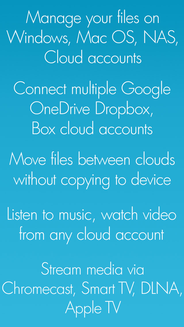 Remote Media Manager Pro is compatible with Mac, Windows, Linux, Time Capsule, NAS, WebDAv, iCloud, OneDrive, Dropbox, Box and Google Drive. Thanks to the integrated player we will be able to enjoy the movies that we have on these services without having to download them to your device. Is compatible with the formats .avi, .mkv, .wmv, .mpg,. mp4,. mov…