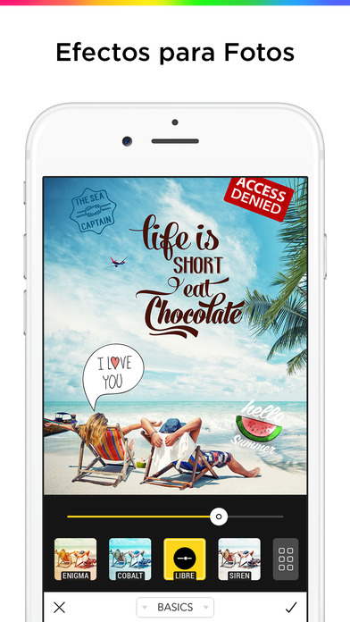 Explore its collection of filters, tools and effects exclusive of last generation that will make that your creativity fly and that your photos look like never!