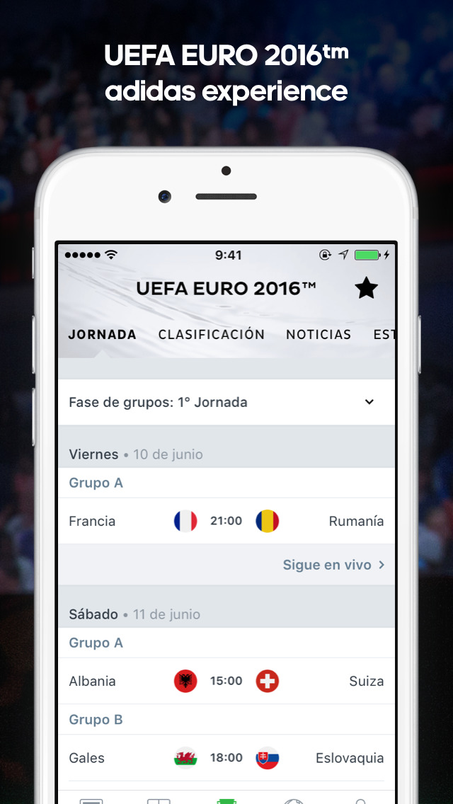 Follow your teams and favorite players during the UEFA EURO 2016 with the Adidas Experience.