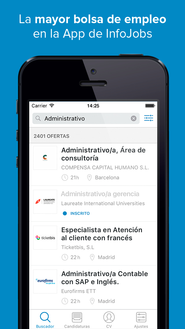 We want to share with you this first version of the new App where you will find improvements in design and usability. You can perform search and tracking of your job offers and with the next updates will extend the range of functionalities.He development of the app will continue to of way continuous your feedback to add the features that more can help you in your search of employment. In fact in paragraph a. of the App you can review and/or report what consideréis appropriate. We are building the perfect app! We have you to help us to achieve this.